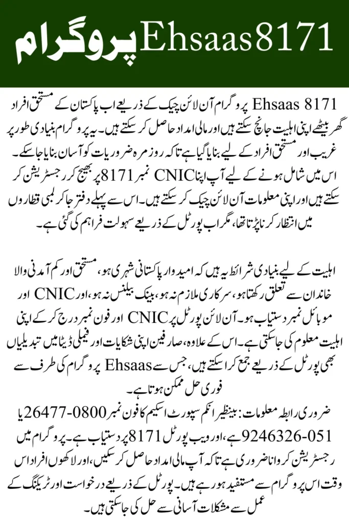 8171 Ehsaas Program CNIC Check Online 2026 NADRA