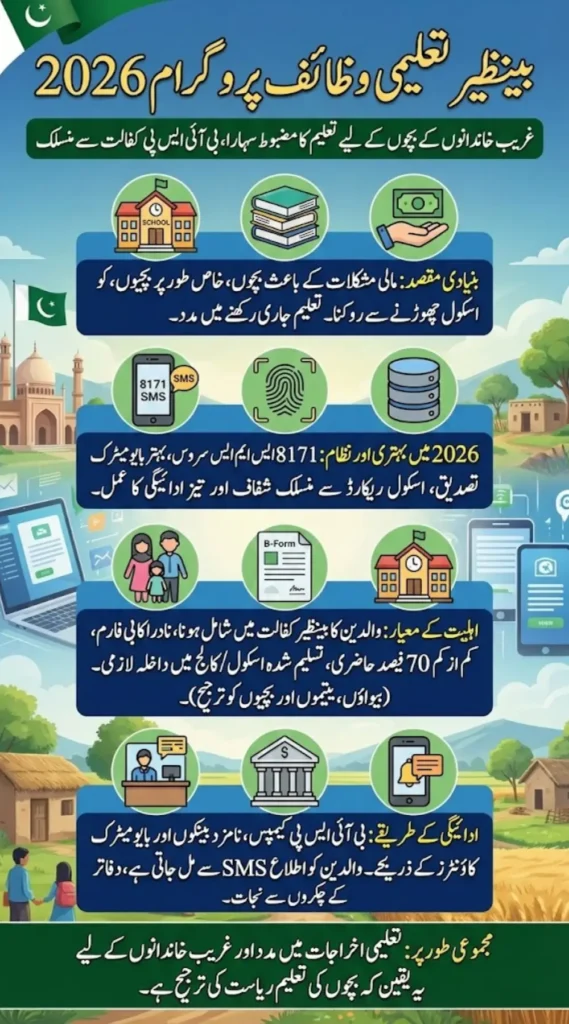 In 2026, Benazir Taleemi Wazaif program has become more strict on attendance but smoother in payments. Verification is now better connected with school records, NADRA data, and biometric systems, reducing fake enrollments and delays.