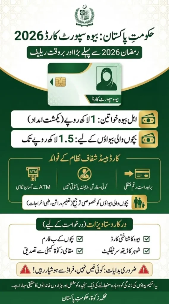 Managed through the Government of Pakistan and provincial Zakat Departments, the card-based system ensures transparent, direct payments without middlemen. Funds will be released from late February 2026, helping widows manage household expenses, children’s education, and basic needs with dignity and security.