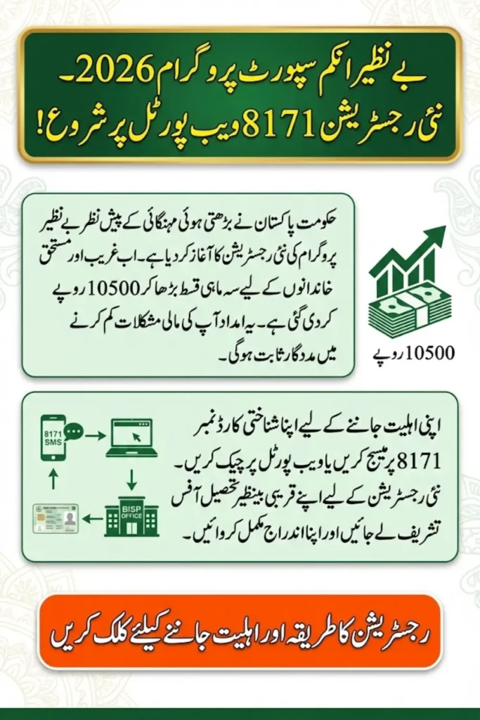 Therefore, BISP Chairperson Shazia Murree has announced that re-registration of the BISP program has been started and all such persons who were not eligible for this program earlier can also apply for the BISP program. and they can also apply for registration for this program through the 8171 web portal.