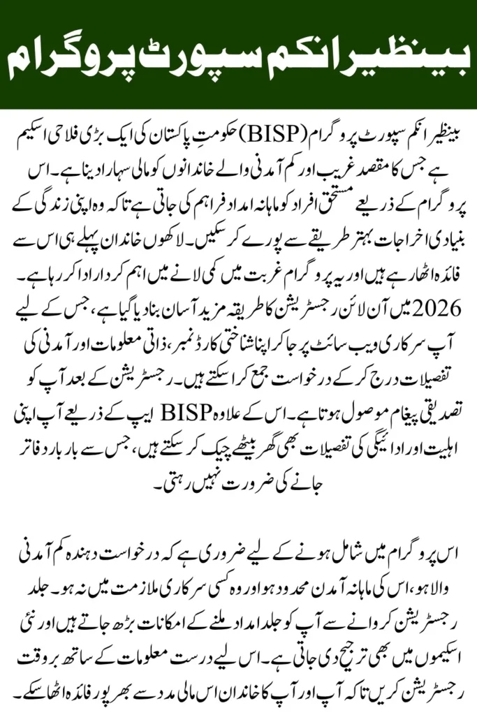 The BISP online registration 2026 is a great opportunity for low-income families to receive financial assistance and improve their quality of life.