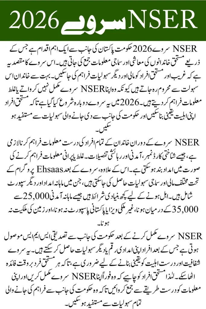 NSER Survey Register Yourself We are going to inform you about this update of the NSER Year Survey 2026. NSER has declare restart early. So some of these families are just plain poor. And they are worry. Therefore, the important NSER survey has start again by the government. Because it was very important to start the NSER survey. Some of these families are entitle to assistance and want to get various facilities. But they cannot get the facilities.