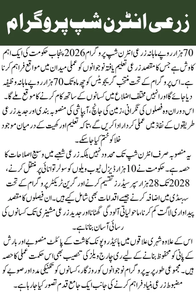 The Rs70,000 Agriculture Internship Program 2026 reflects Punjab’s commitment to empowering youth while transforming the farming sector. With financial support, structured training, and innovative agricultural projects, the program creates meaningful opportunities for graduates.